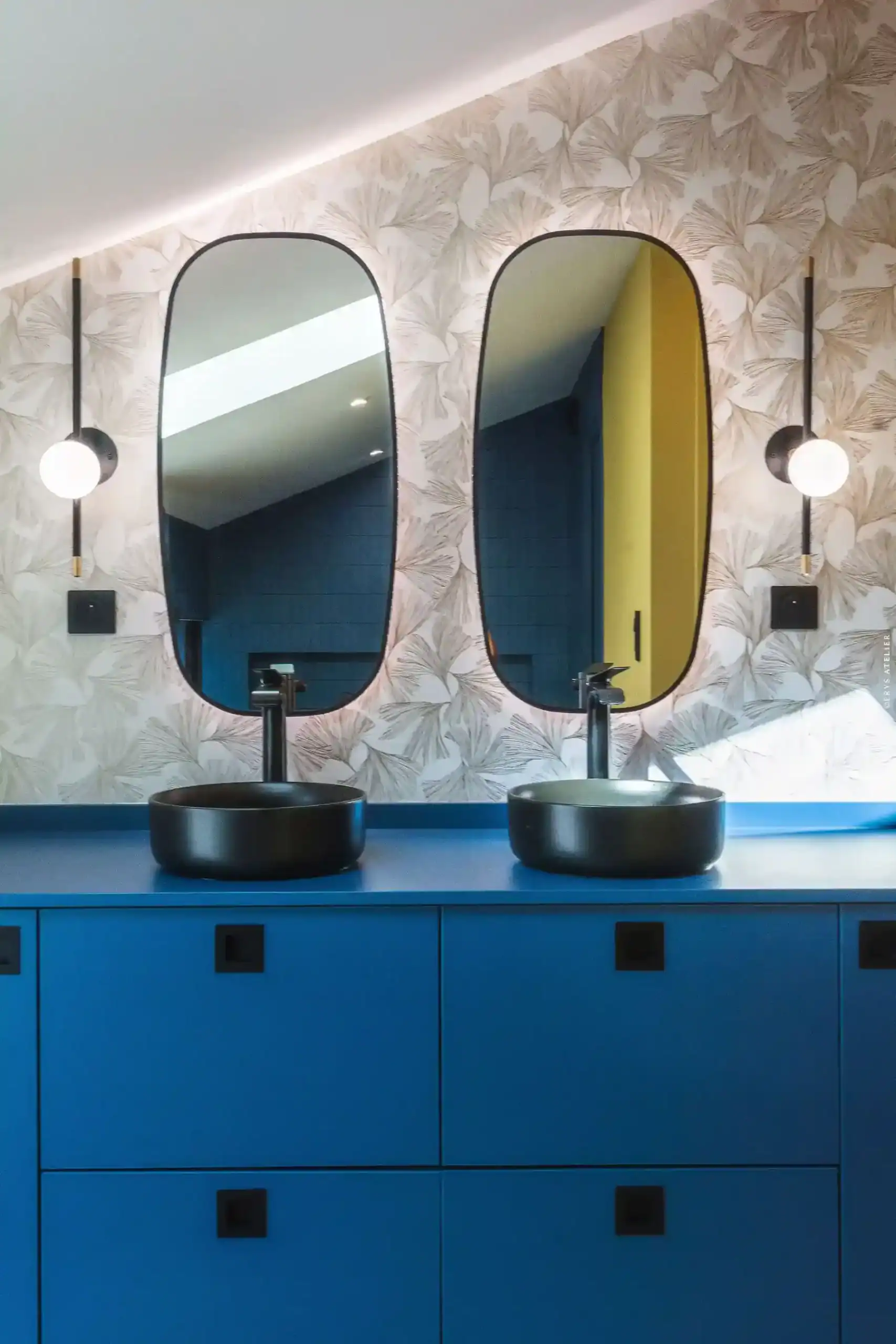Au dernier étage, la suite Gingko déploie ses charmes sous les toits. Grâce aux velux cabrio, profitez d’une vue latérale dégagée sur la nature environnante. La salle de bains attenante est un véritable espace bien-être avec grande douche à l’italienne, baignoire, et double vasque.